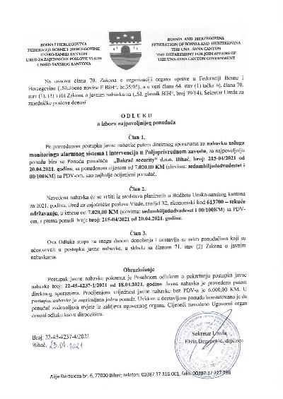 Preuzmi dokument: Odluka o izboru najpovoljnijeg ponuđača