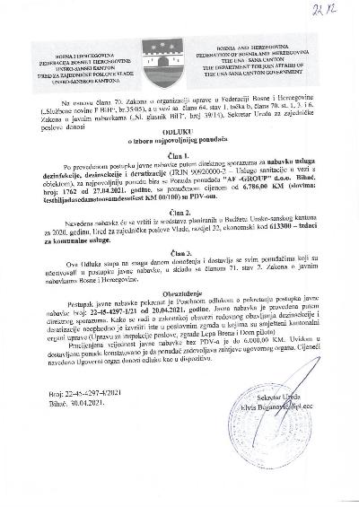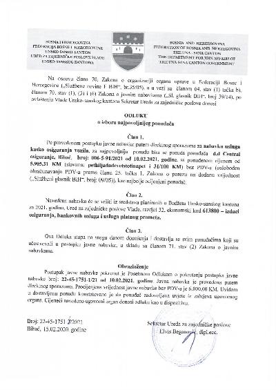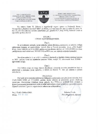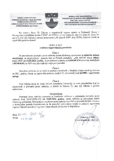 Na osnovu Zaključka Skupštine Unsko-sanskog kantona (broj: 01/1-2-45-607/25 ...