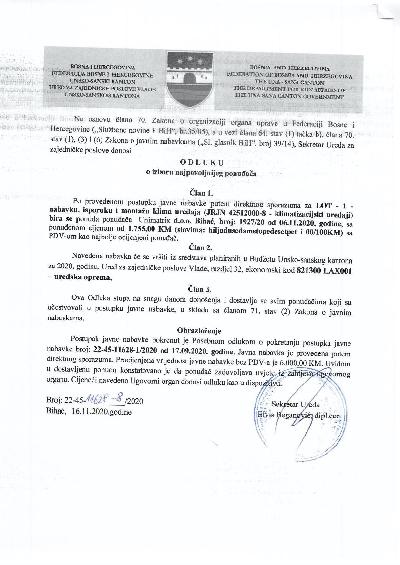 Preuzmi dokument: Odluka o izboru najpovoljnijeg ponuđača