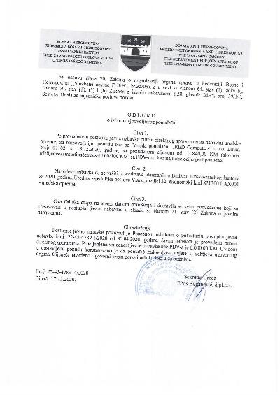 Na osnovu Zaključka Skupštine Unsko-sanskog kantona (broj: 01/1-2-45-607/25 ...