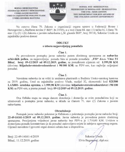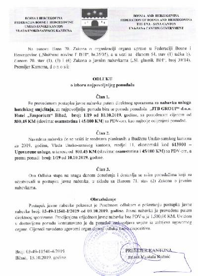 Preuzmi dokumente: Odluka o izboru najpovoljnijeg ponuđaÄa 28.10.2019 ...