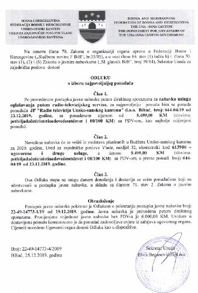 Preuzmi dokument: - Odluka o izboru najpovoljnijeg ponuđaÄa - Nabavka usluga ...
