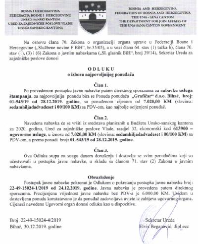 Preuzmi dokument: Odluka o izboru najpovoljnijeg ponuđača