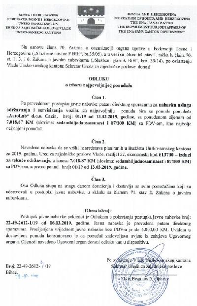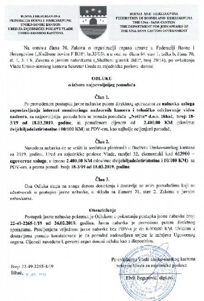 Odluka o izboru najpovoljnijeg ponuđaÄa, 18.02.2019.