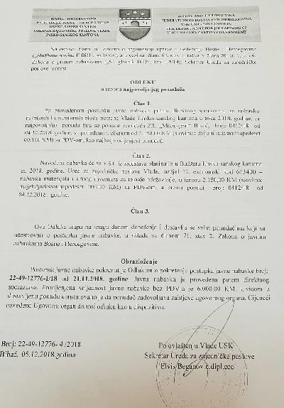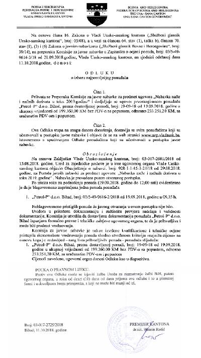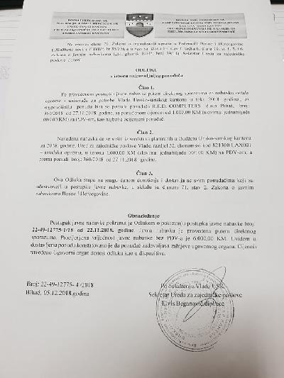 Odluka o izbori najpovoljnijeg ponuđaÄa (18. januar 2019.)