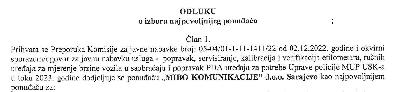 ODLUKA o izboru najpovoljnijeg ponuđaÄa 07.12.22.( PREUZMI )
