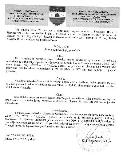 Preuzmi dokument: Odluka o izboru najpovoljnijeg ponuđaÄa - 16.08.2022.