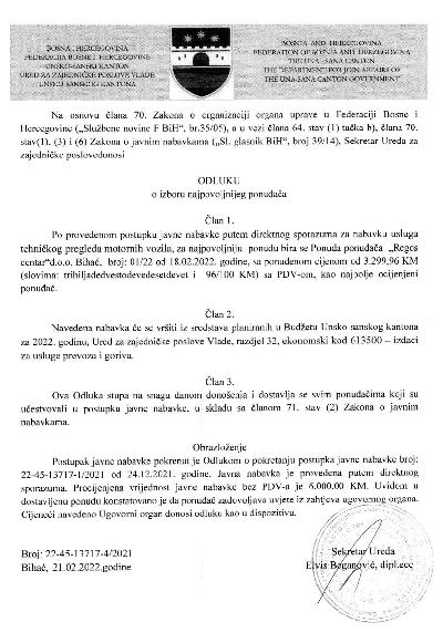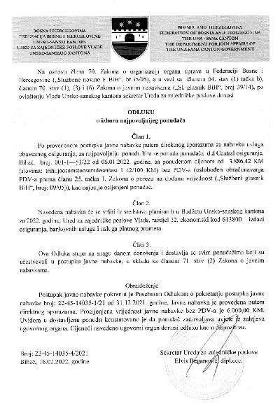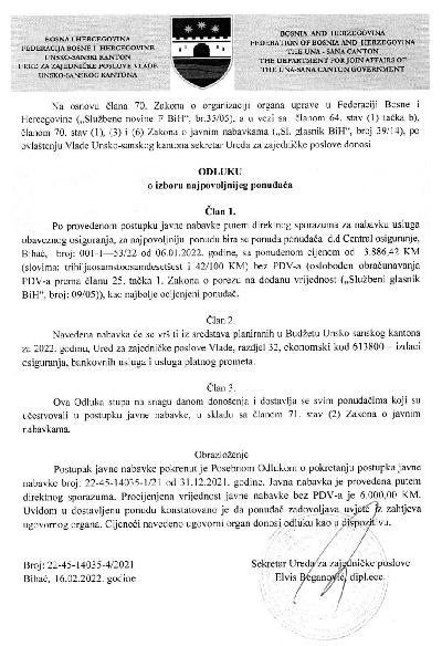 Na osnovu Zaključka Skupštine Unsko-sanskog kantona (broj: 01/1-2-45-607/25 ...