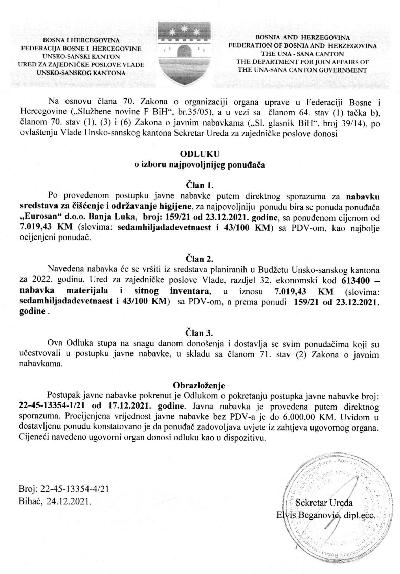 Preuzmi dokument: Odluka o izboru najpovoljnijeg ponuđača
