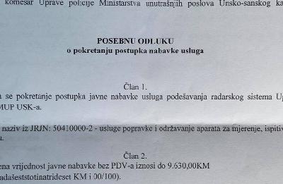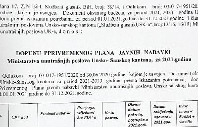 Dopuna Privremenog plana javnih nabavki MUP USK za 2021. godinu (PREUZMI DOKUMENT)