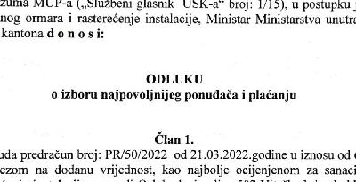Odluka o izboru najpovoljnijeg ponuđaÄa (PREUZMI DOKUMENT).