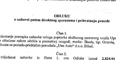 Odluka o nabavci putem direktnog sporazuma i prihvatanju ponude (PREUZMI ODLUKU)