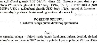 Posebna Odluka o nabavci usluga putem direktnog sporazuma (PREUZMI ODLUKU).